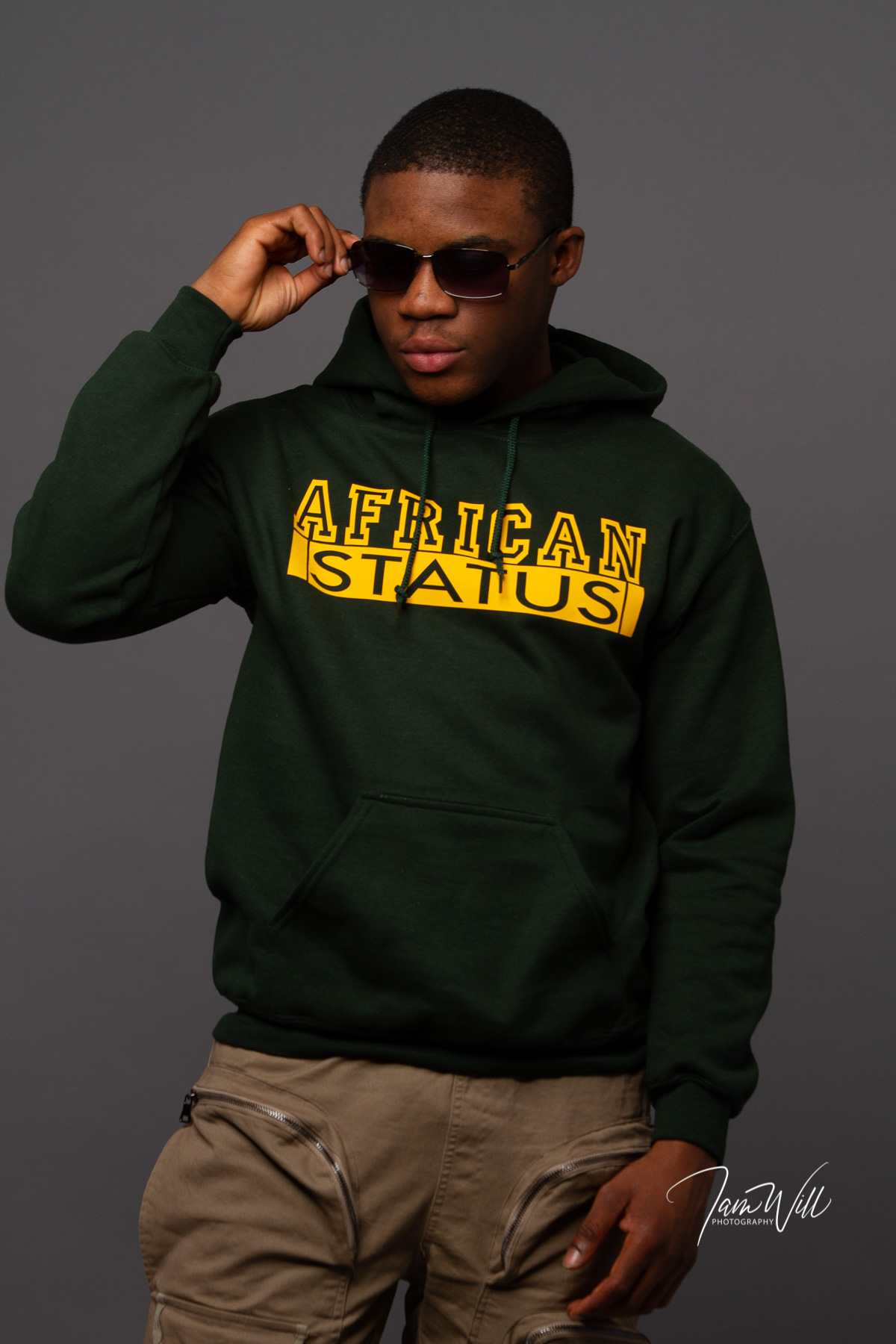 Men Green Hoodie with Yellow Inscribed African Status and Respect on Left Arm.